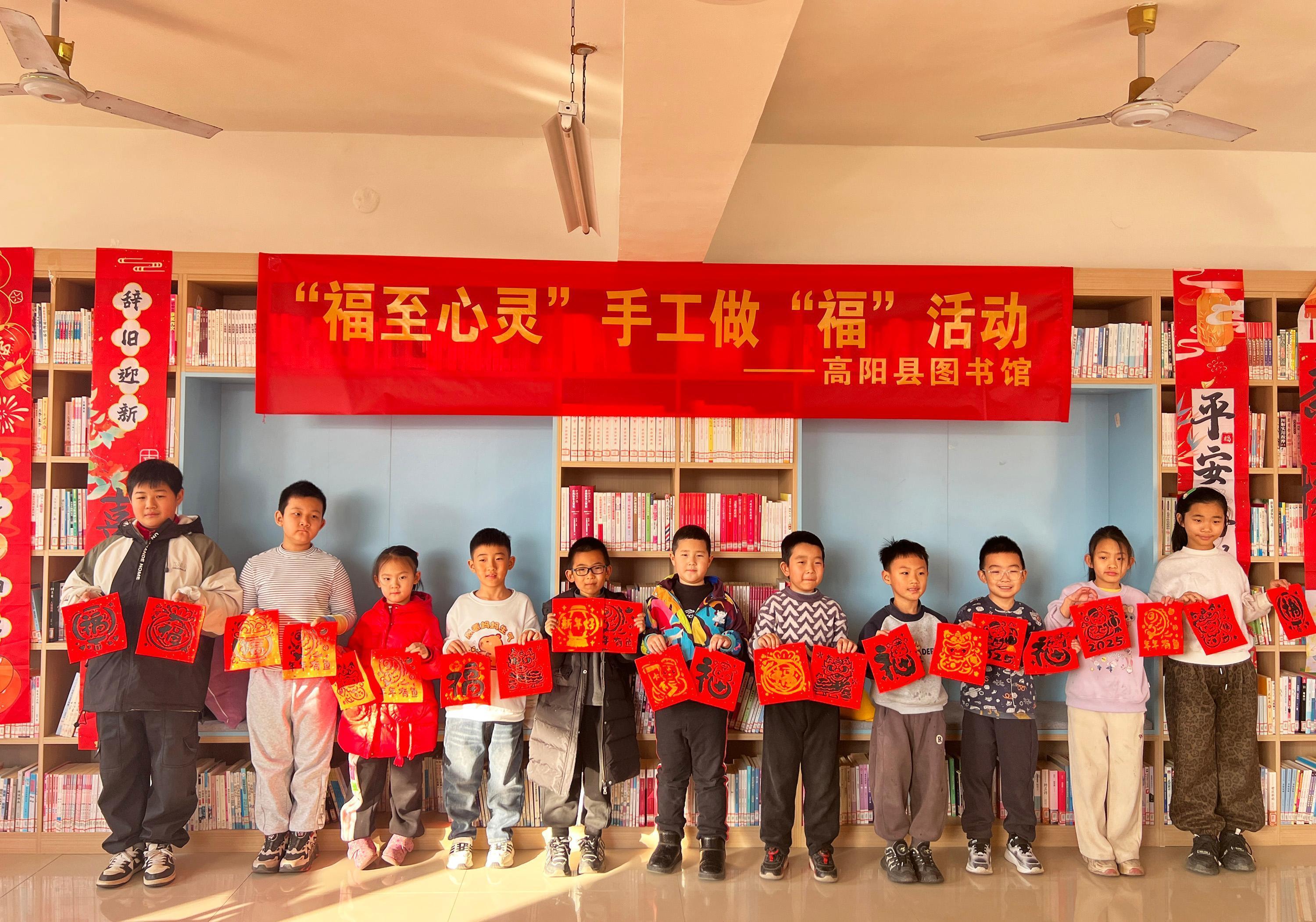 高阳县图书馆馆长房亚娟介绍,春节期间,高阳县图书馆将开展国风非遗绣球灯笼制作、“巧手剪窗花新春送祝福”DIY手工、“以书会友 快乐阅读”读书分享会等一系列丰富多彩的节日活动,丰富孩子们的假期文化生活,让孩子们在参与体验中获真知增才干,感受浓浓年味儿。(杨瀰)